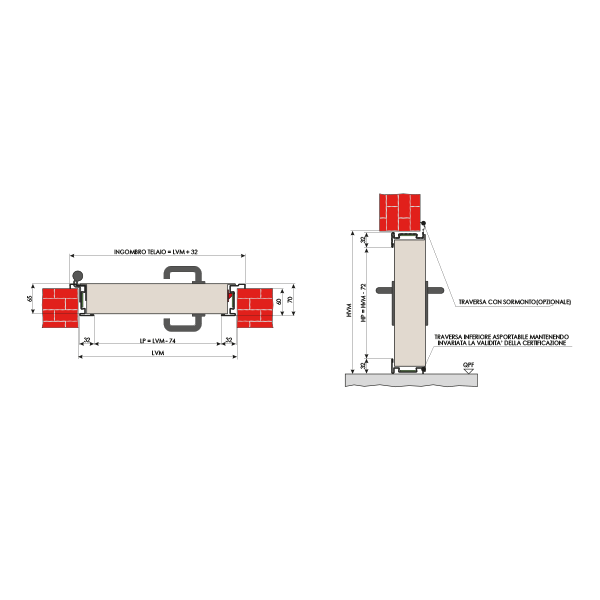 Porta tagliafuoco SPLIT fornita assemblata e reversibile per applicazione di mano destra o sinistra, certificata secondo la nuova normativa Europea UNI EN 1634-1 Omologata dal ministero dell’interno. Porta fornita con maniglia interna + maniglia esterna colore nero, cilindro passante nichelato di tipo YALE con imballo in cartone.